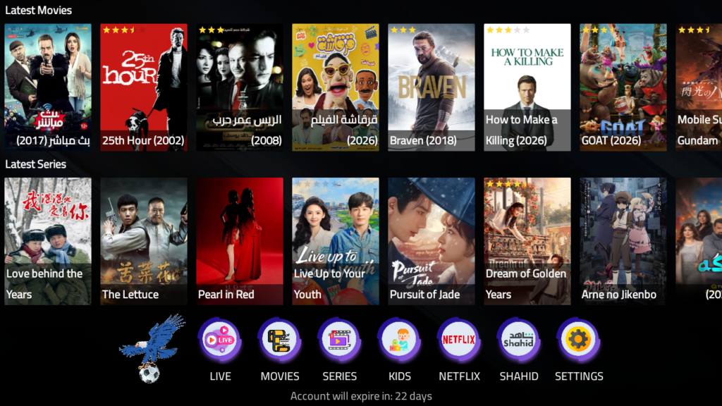مع Vulture IPTV لن تفوت أي جديد في عالم الترفيه! نوفر لك مكتبة ضخمة تحتوي على أكثر من 25,000 فيلم ومسلسل من أحدث الإنتاجات العالمية والعربية، بما في ذلك أحدث إصدارات السينما والمسلسلات الحصرية.